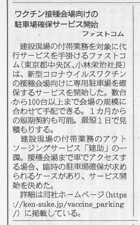 「日刊建設工業新聞」に新サービスを掲載いただきました